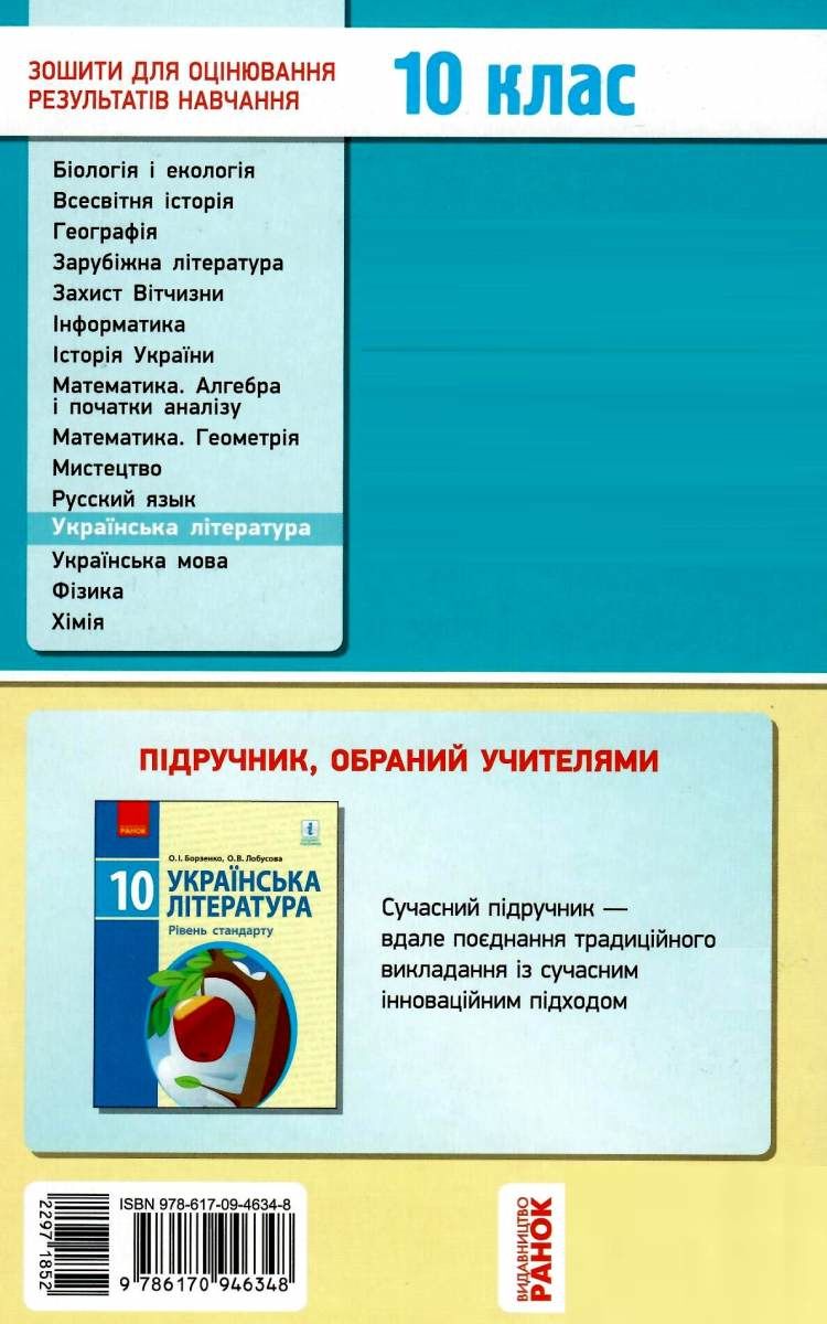 уцінка українська література 10 клас зошит для оцінювання результатів навчання рівень стандартустан