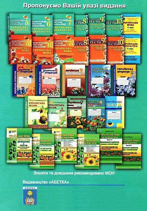 куриліна українська література 7 клас контрольні тестові завдання купить цена купити ціна "Абетка