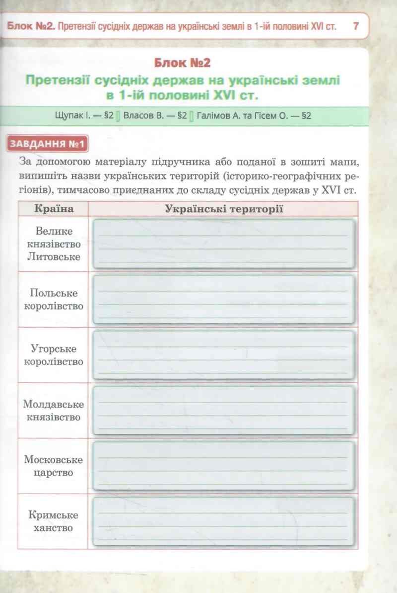 Зошит укладено відповідно до чинних модельних навчальних програм для закладів загальної середньої освіти, рекомендованих Міністерством освіти і науки України.Синхронізовано з підручниками 2025 року видання, авторів:Власов В., Данилевська О., Ващук Д.;Галімов А., Гісем О., Мартинюк О. та інші;Щупак І., Старченко Н., Бурлака О. та інші.За модельними навчальними програмами:«Історія України. 7-9 класи» (Бурлака О., Желіба О., Павловська-Кравчук В., Худобець О., Черкас Б., Щупак І.)