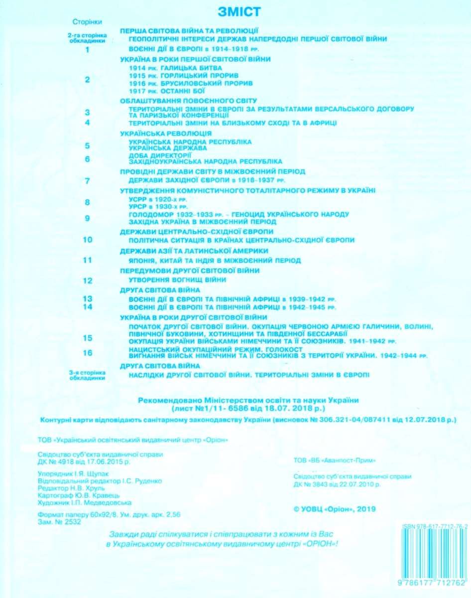 контурні карти 10 клас історія україни та всесвітня історія "Оріон" контурна карта