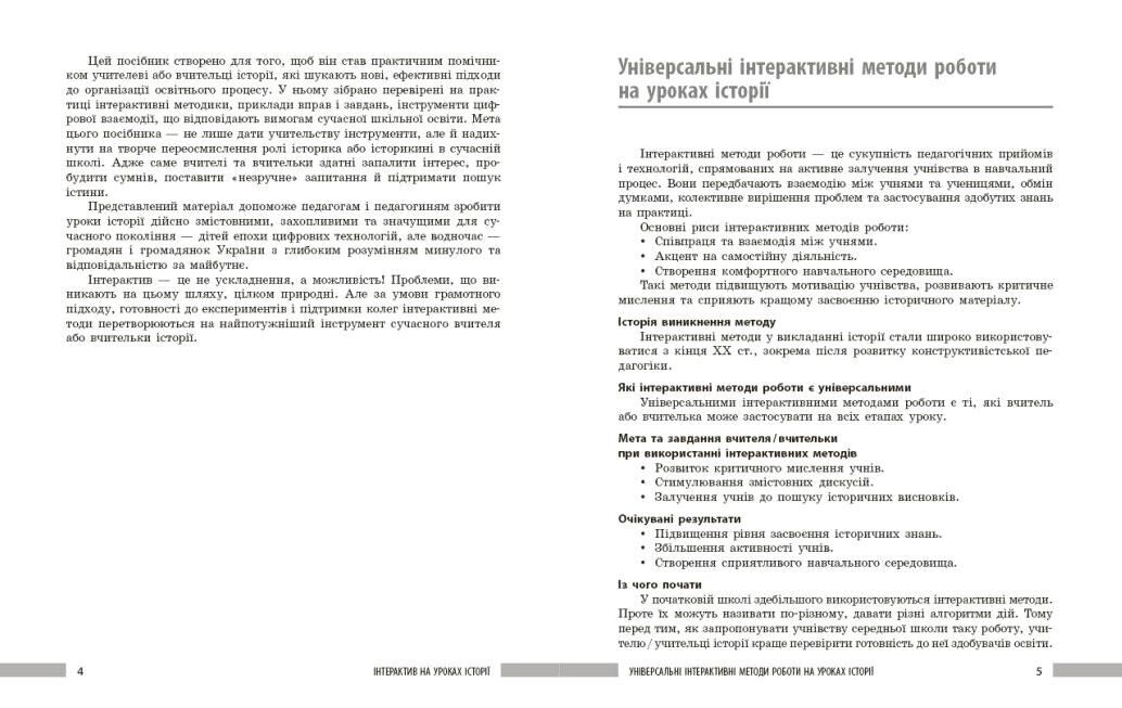 Посібник містить перевірені на практиці інтерактивні методики, вправи і завдання, цифрові інструменти, що відповідають вимогам Нової української школи. Приклади застосування інтерактивних методів наведені за підручниками з історії видавництва «Ранок». Інтерактивні методи навчання сприятимуть тому, щоб уроки історії стали динамічними, змістовними й захопливими. Призначений для вчителів та вчительок історії, студентів закладів вищої освіти.