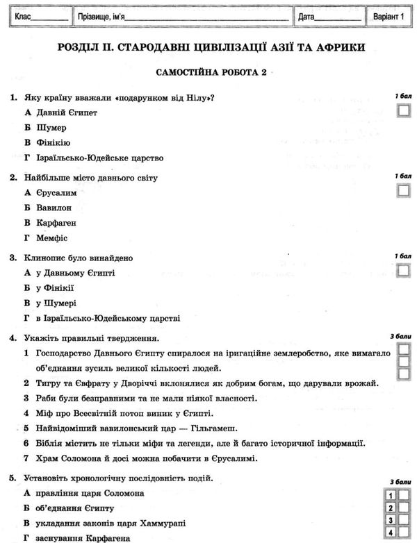 тест-контроль 6 клас всесвітня історія + історія україни