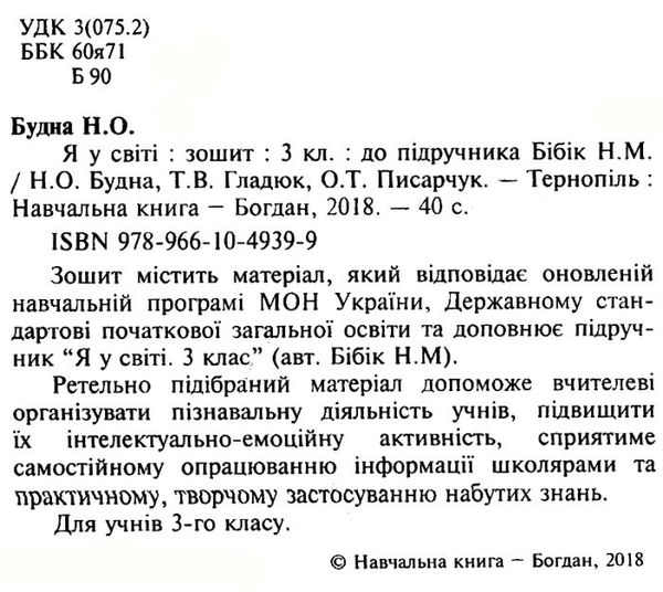 Будна. Я у світі 3 клас Робочий зошит (до підручника Бібік) купити "Богдан"