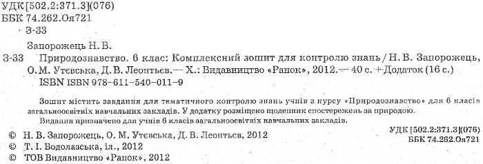 Запорожець Природознавство 6 клас Комплексний зошит для контролю знань + додаток купити "Ранок"