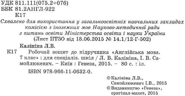 зошит з англійської мови 7 клас калініна купить цена купити ціна робочий зошит "Генеза"