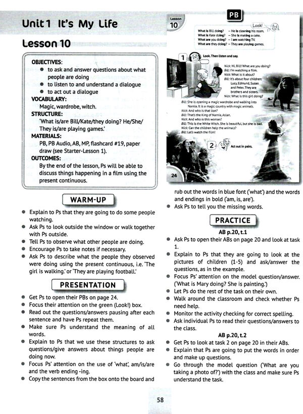 У другій частині запропоновано планування роботи з матеріалами НМК на навчальний рік та детальні поурочні розробки, які допоможуть зорієнтуватися в завданнях кожного уроку, підготувати необхідне обладнання, зосередитися на очікуваних результатах. Сценарій уроку наведено з покроковою організацією іншомовного навчання четвертокласників.
