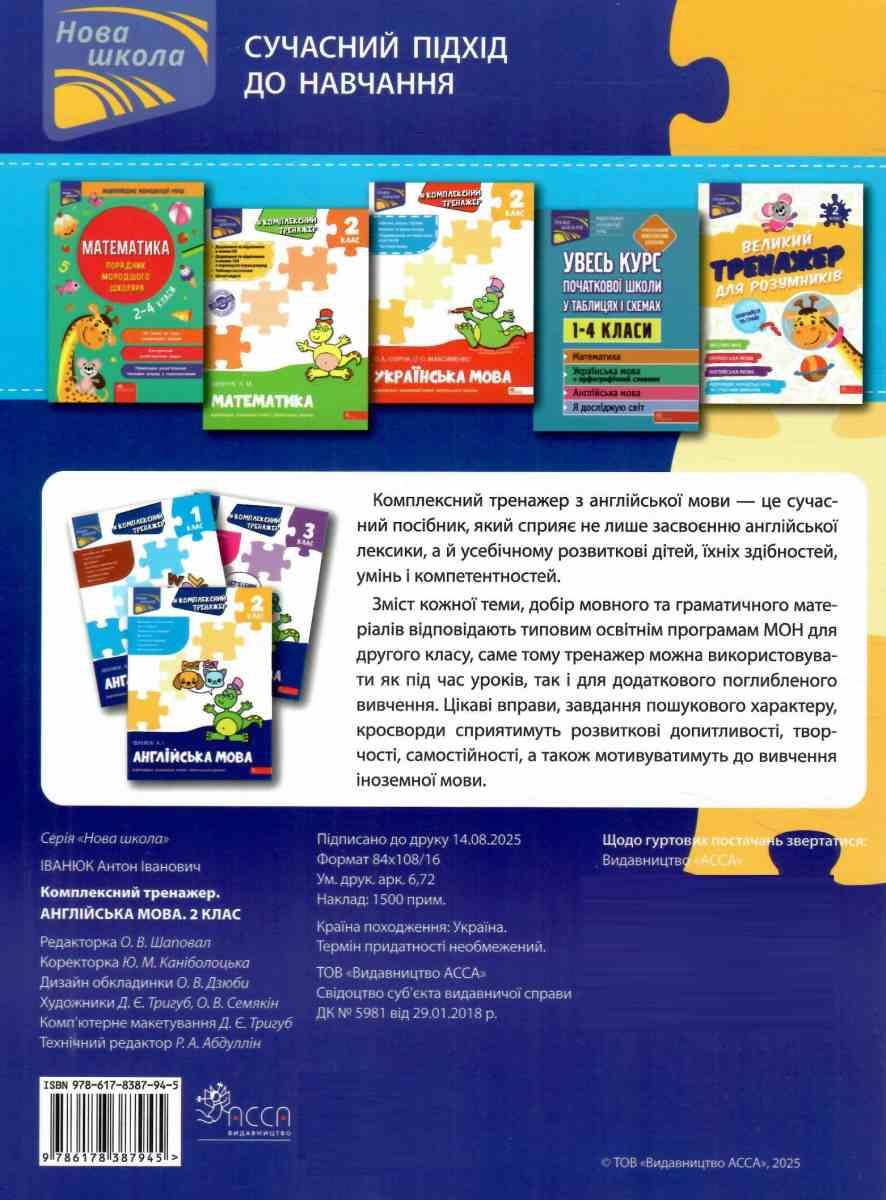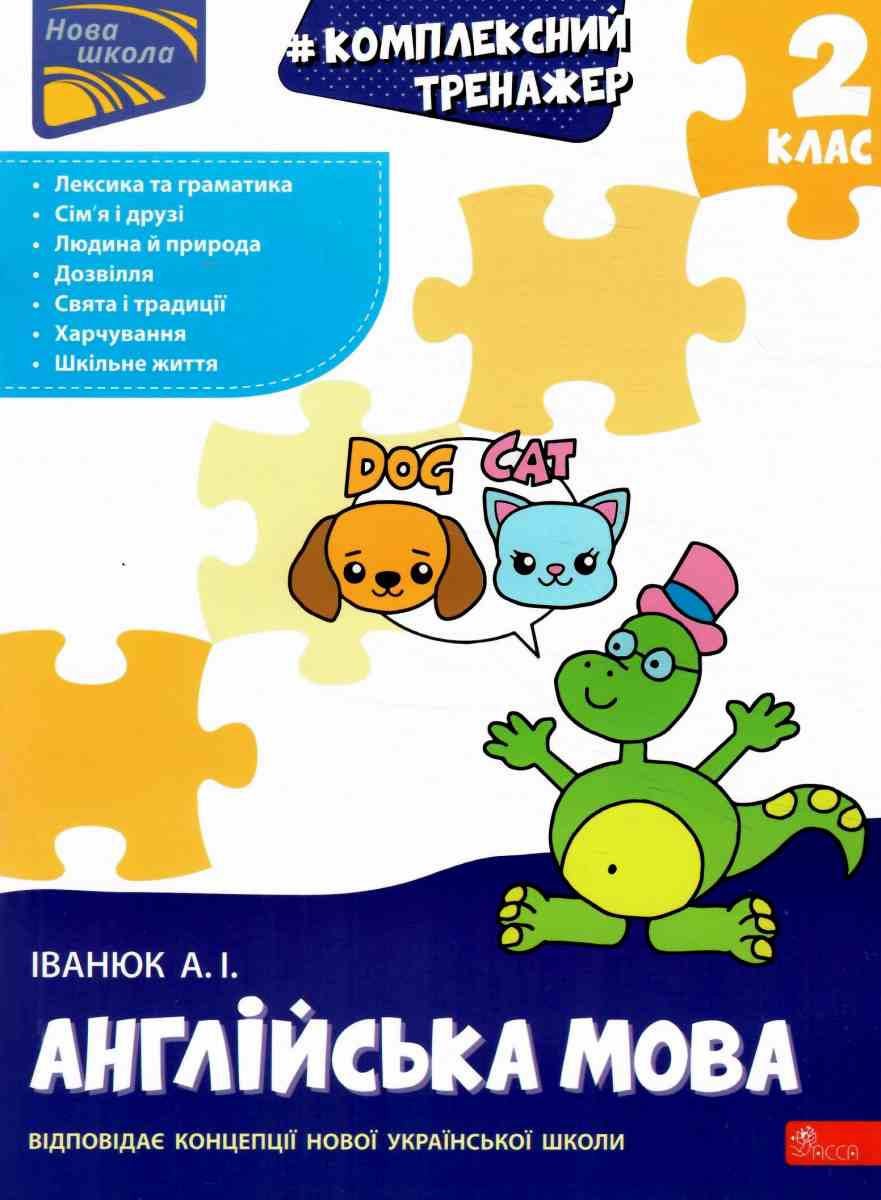 Комплексний тренажер з англійської мови – це сучасний посібник, який сприяє не лише засвоєнню англійської мови, а й всебічному розвиткові дітей, їх здібностей, вмінь та компетентностей. Зміст кожної теми, добір мовного та граматичного матеріалу відповідають типовим освітнім програмам МОН для другого класу, саме тому тренажер може використовуватись як під час уроків, так і для додаткового поглибленого вивчення. Представлені вправи, завдання пошукового характеру, кросворди, розмальовки, лабіринти сприятимуть розвитку допитливості, творчості, самостійності, а також мотивуватимуть до вивчення іноземної мови. Завдяки тренажеру школярі повторять англійську абетку, почнуть знайомство з граматикою англійської мови, а також опанують наступні лексичні теми: Сім’я та друзі. Людина й природа. Дозвілля. Свята і традиції. Улюблена їжа. Шкільне життя.