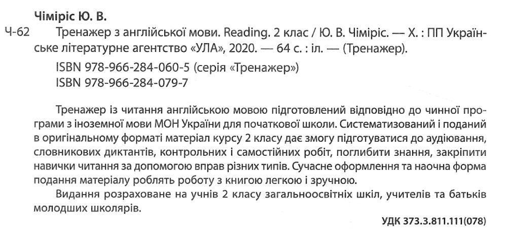 чіміріс тренажер з англійської мови reading 2 клас книга купить цена купити ціна "Ула"