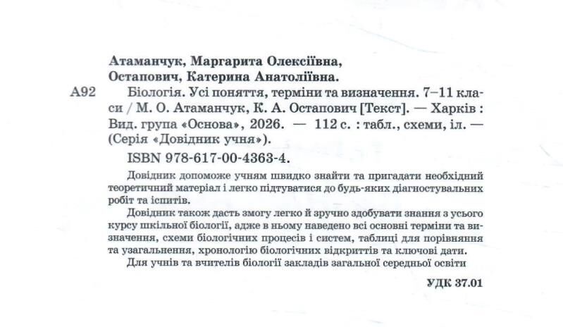 Він дасть змогу легко та зручно здобувати знання з усього курсу шкільної біології. Посібник пропонує: