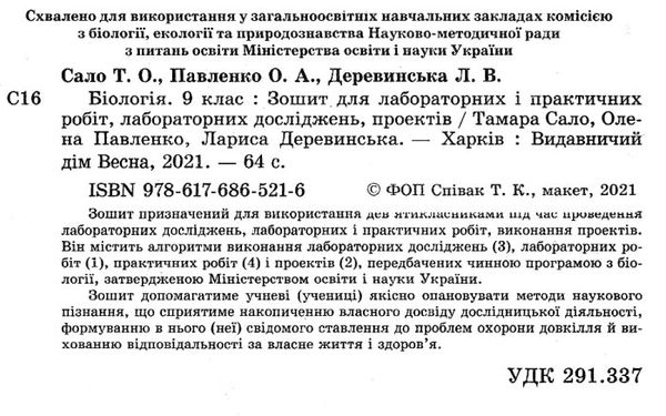 зошит з біології 9 клас сало купити ціна купить цена для лабораторних та практичних робіт "Весна" (оновлена програма)