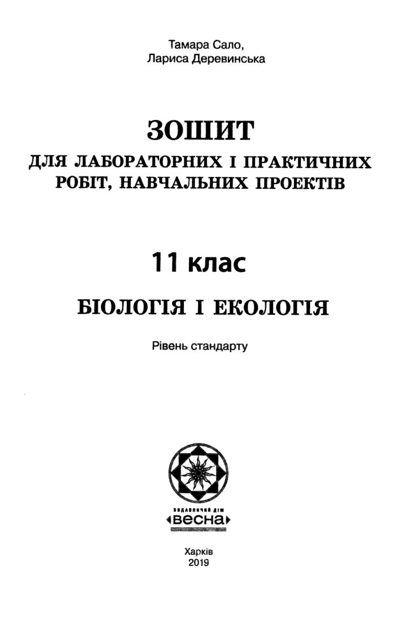 тест-контроль 11 клас біологія і екологія рівень стандарту "Весна