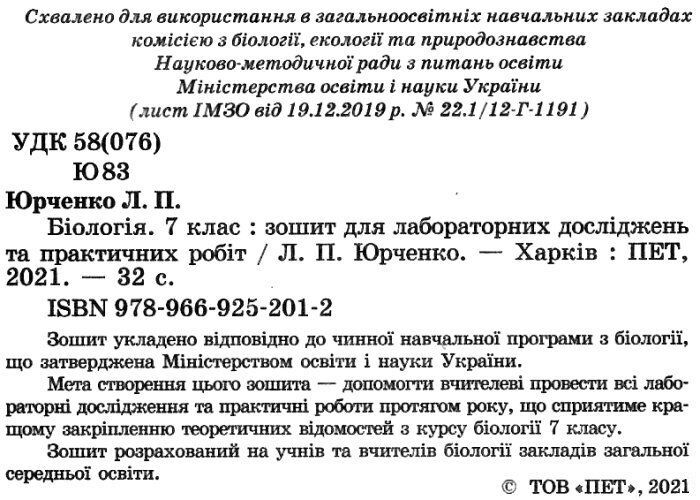 Біологія 7 клас зошит для лабораторних досліджень практичних робіт (стан вітрина)