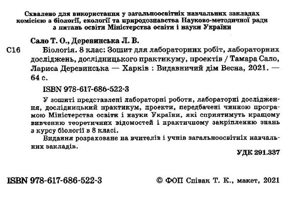 У зошиті представлені лабораторні роботи, лабораторні дослідження, дослідницький практикум, проекти, передбачені чинною програмою Міністерства освіти і науки України, які сприятимуть кращому вивченню теоретичних відомостей і практичному закріпленню знань з курсу біології в 8 класі.
