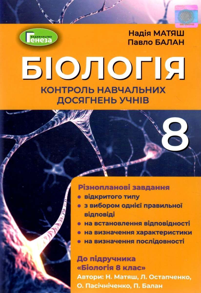 Зошит з біології 8 клас матяш зошит для контролю навчальних досягнень