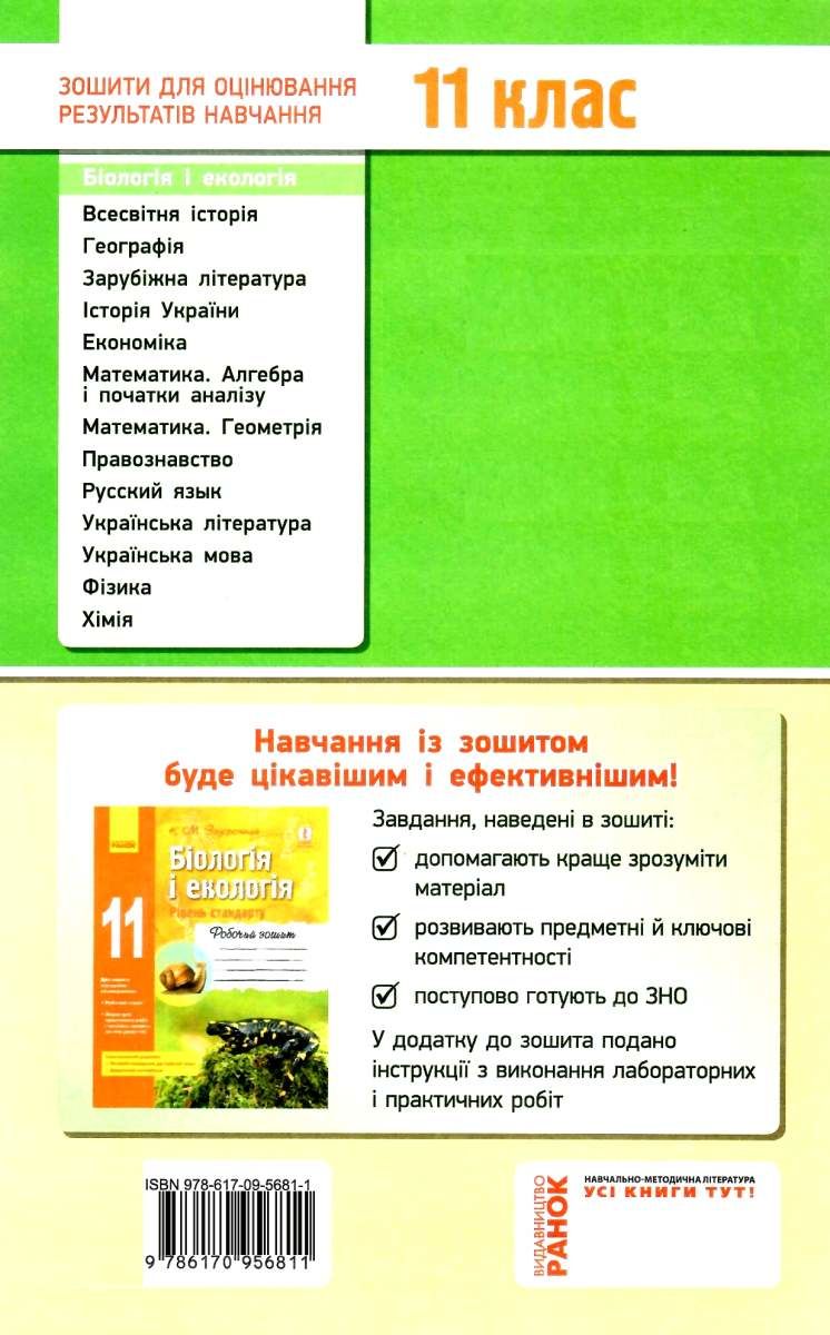 біологія і екологія 11 клас зошит для оцінювання результатів навчання рівень стандарту "Р