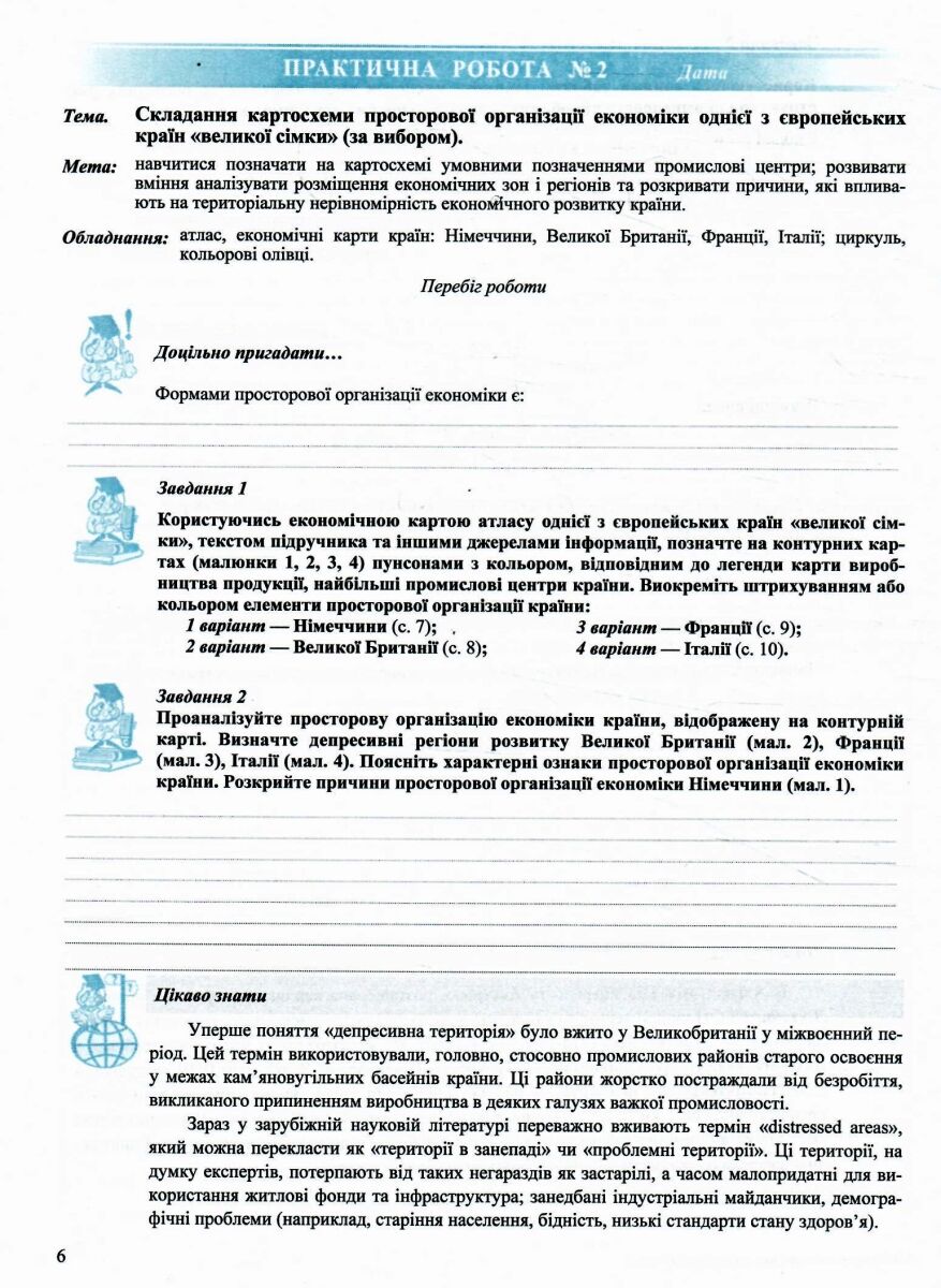 географія 10 клас регіони та країни практичні роботи