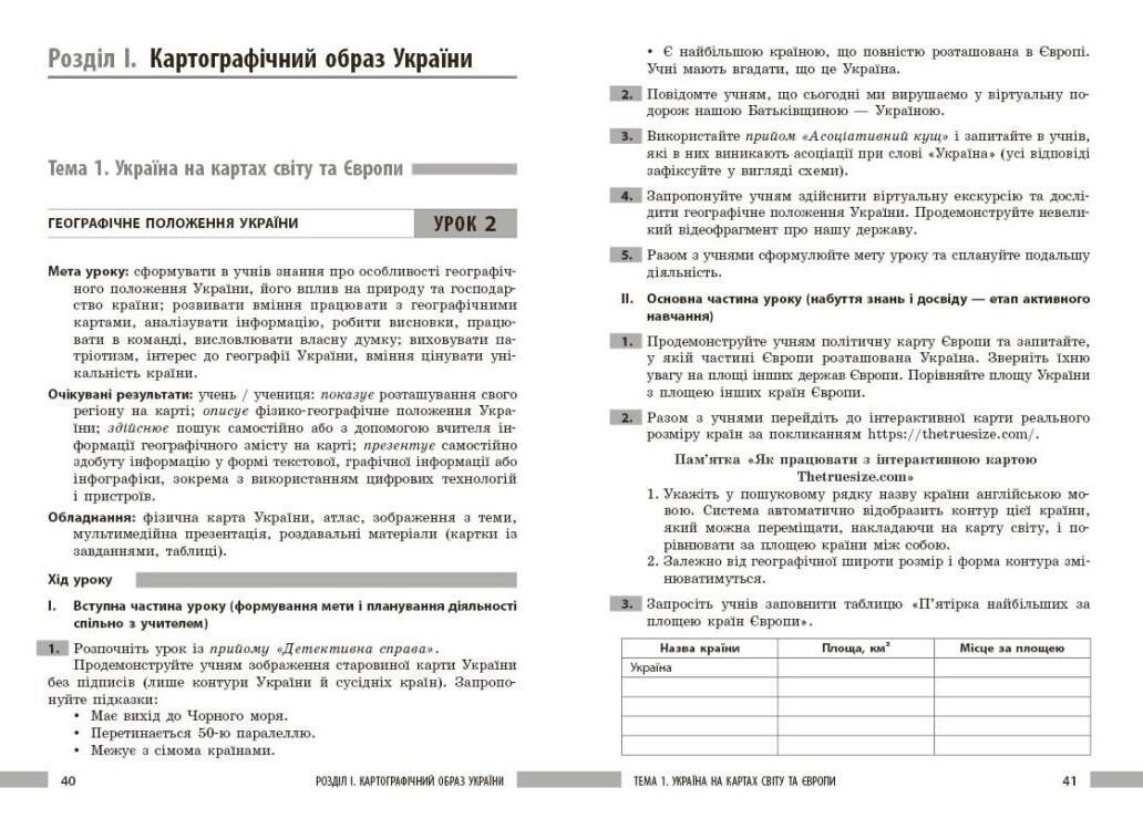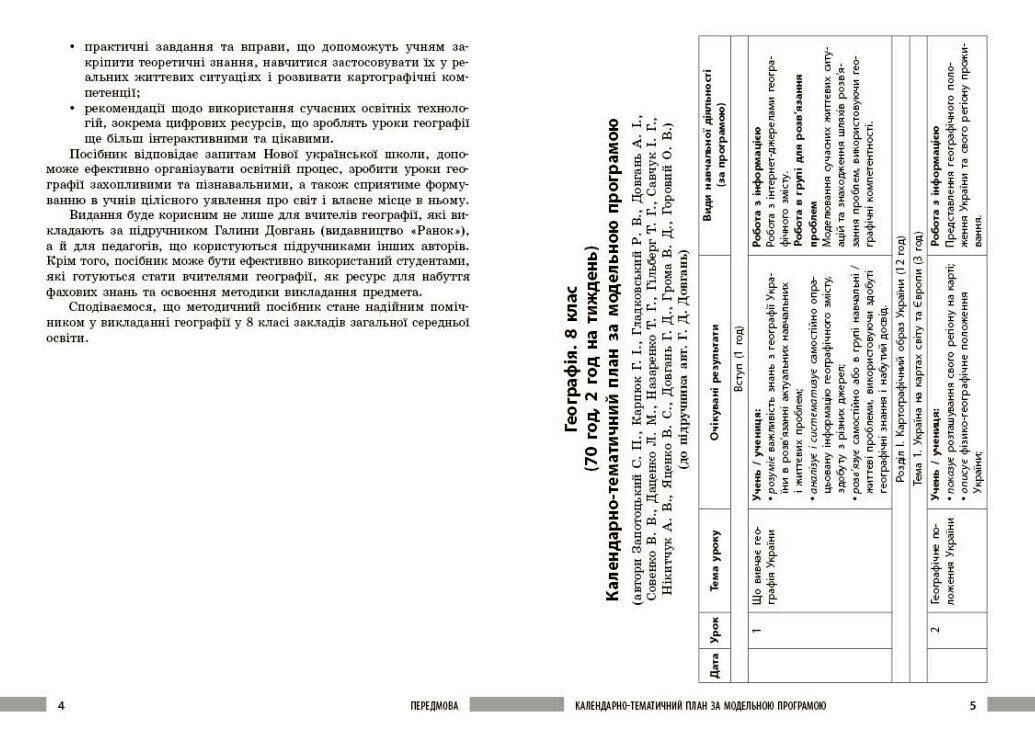 Курс географії у 8 класі дозволяє сформувати в учнівства знання про природні умови та ресурси України, усвідомити себе невід’ємною частиною української нації та власну відповідальність за її буття, відчути себе справжнім патріотом своєї держави. Ви- вчення географії у 8 класі спрямоване на формування науково-географічної картини своєї держави як складника світової спіль- ноти