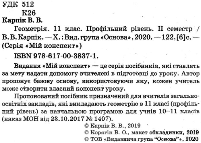 геометрія 11 клас 2 семестр мій конспект профільний рівень