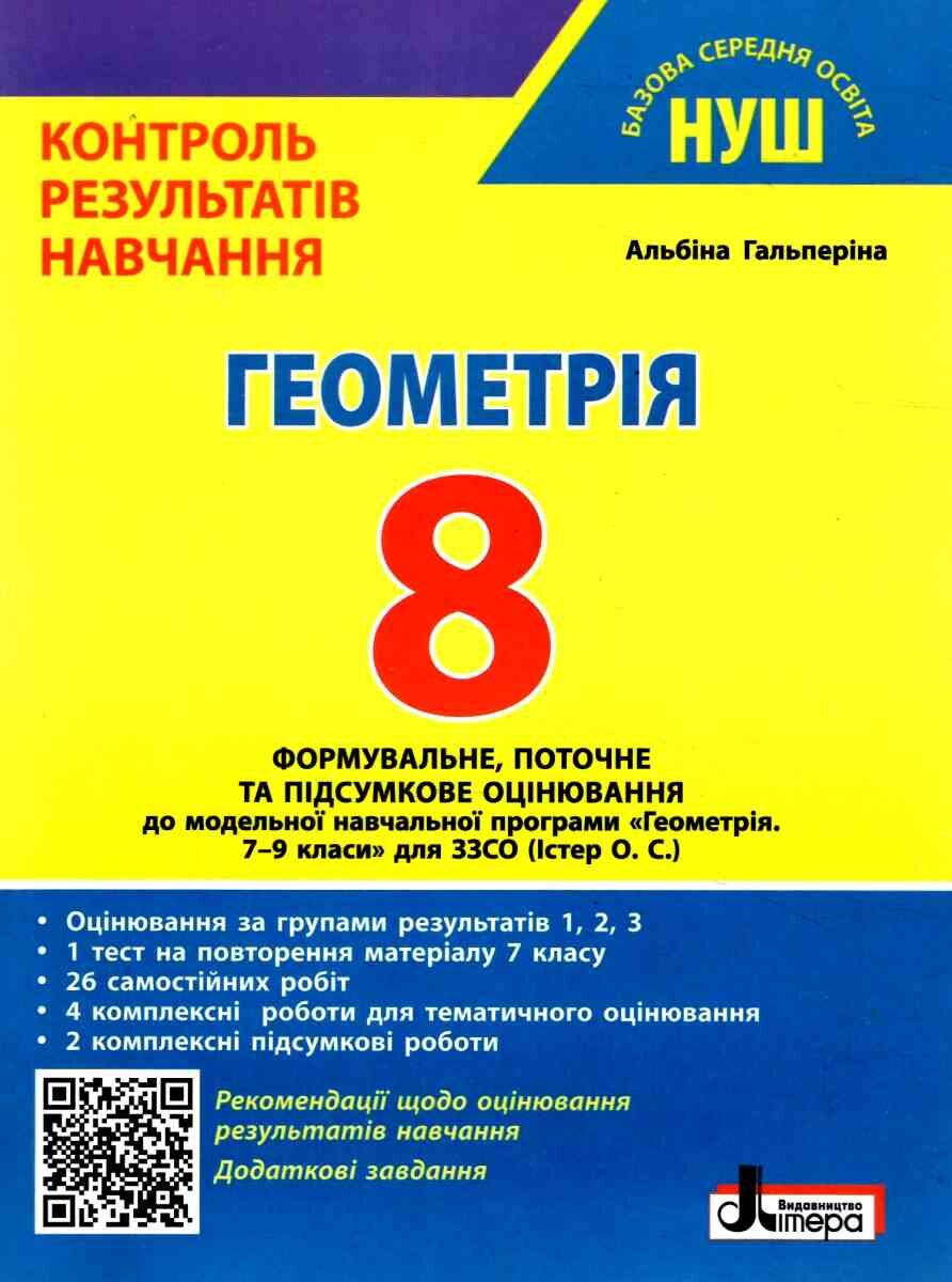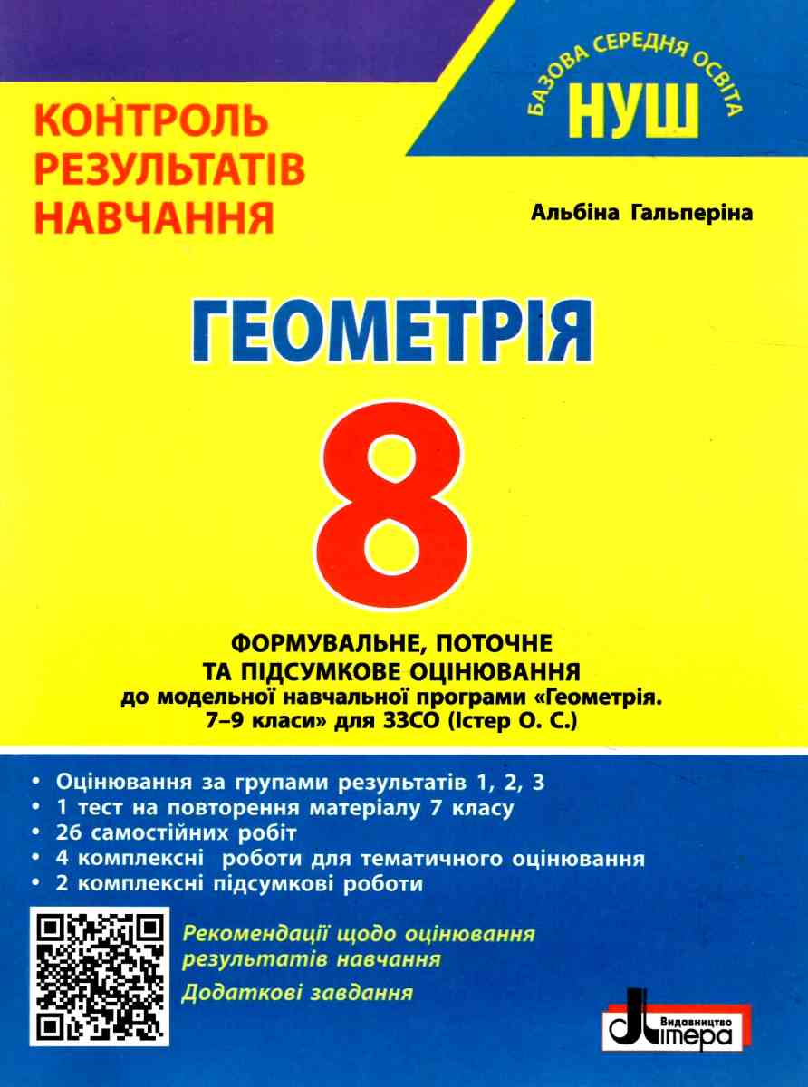 Купити 8 клас НУШ. Геометрія. Контроль результатів навчання + Оцінювання за групами результатів (Автор: Альбіна Гальперіна), Оригінальна продукція від видавництва Літера