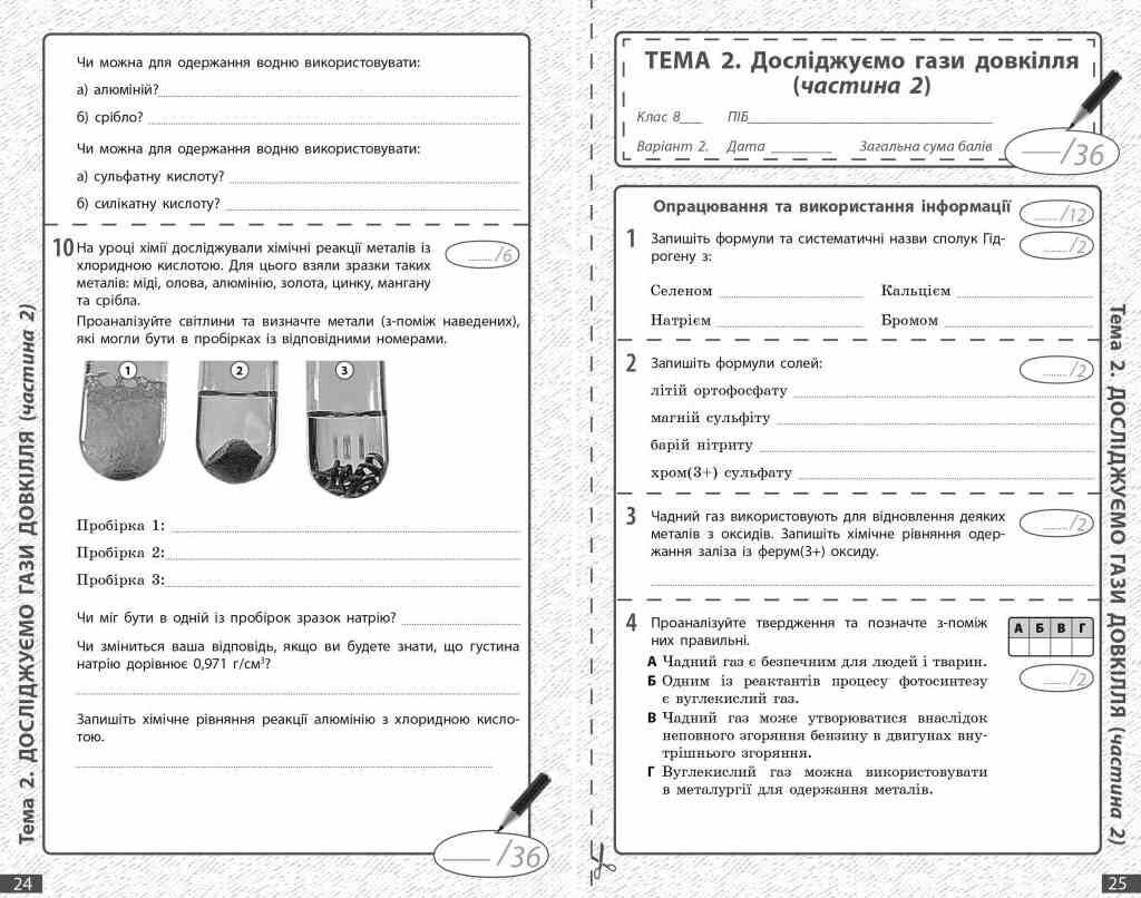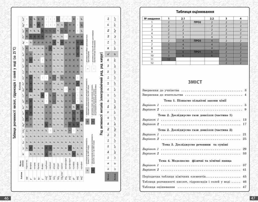 Посібник містить добірку завдань за групами результатів згідно з модельною навчальною програмою. Видання призначене для учнів і учениць 8-го класу ЗЗСО та вчителів / учительок хімії.