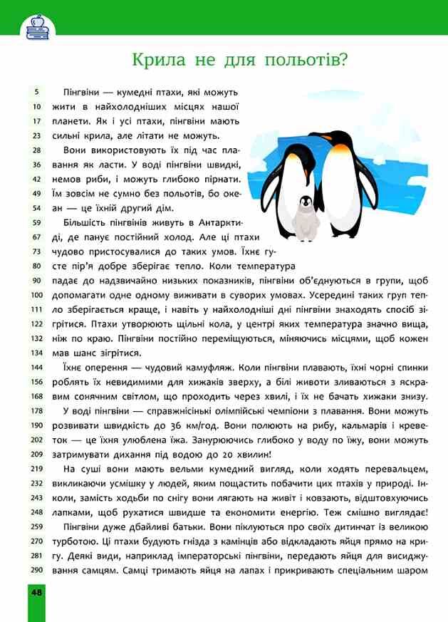 Посібник створено для учнів 4 класу, які прагнуть удосконалити навички швидкого і свідомого читання. Поступове ускладнення оригінальних текстів сприяє підвищенню темпу читання, розвитку артикуляції та розширенню зорового сприймання. Завдання на глибоке розуміння прочитаного, аналіз змісту, встановлення логічних зв’язків і виявлення прихованих сенсів допомагають сформувати у дитини навички критичного мислення. Творчі вправи мотивують до фантазування, переосмислення тексту та мовленнєвого розвитку.