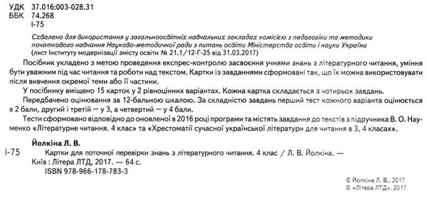 уцінка картки 4 клас з літературного читання до науменко (стара програма)