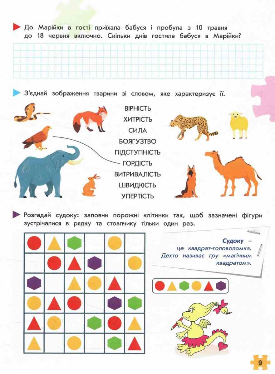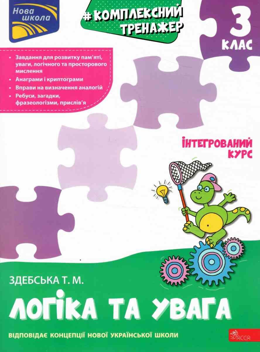 Тренажер «Логіка та увага» — це сучасний посібник, який забезпечить комплексний підхід до формування вміння логічно й аргументовано міркувати. Завдяки йому школярі навчаться поетапно аналізувати завдання, раціонально обирати та обґрунтовувати відповіді. Учні знаходитимуть закономірності, порівнюватимуть предмети за різними ознаками, розгадуватимуть кросворди, ребуси, анаграми, криптограми, читатимуть деформовані тексти за методикою Едигея. А також збагатять словниковий запас, виконуючи мовні завдання. Як результат — дитина навчиться використовувати набуті знання в повсякденному житті.