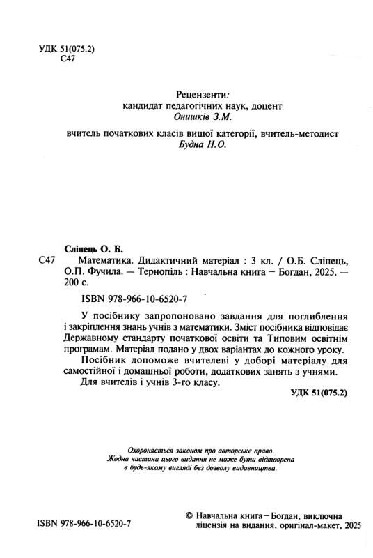 Сліпець Математика 3 клас Дидактичний матеріал (до підручника Богданович) купити "Богдан"