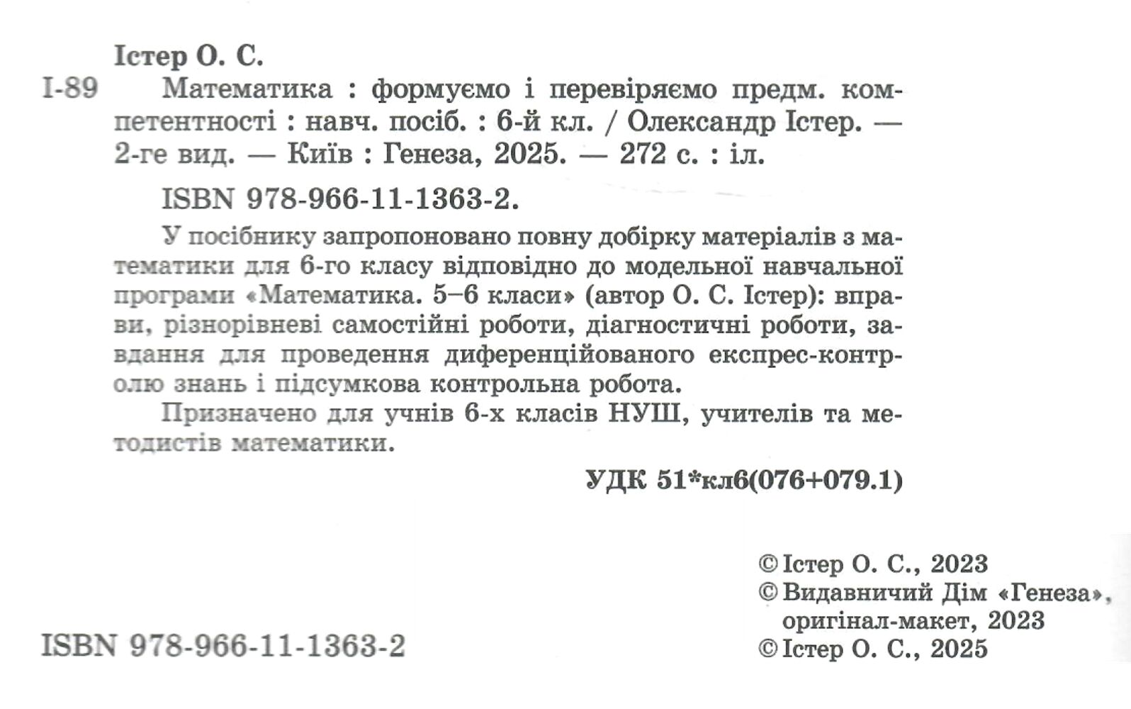 Призначено для учнів 6-их класів закладів загальної середньої освіти і вчителів та методистів математики.