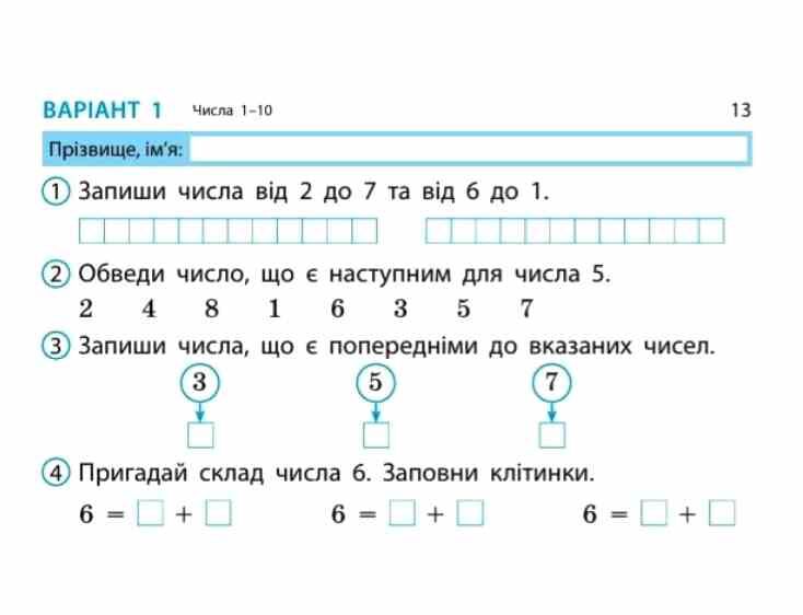 математика 1 клас експрес перевірка до підручника листопад
