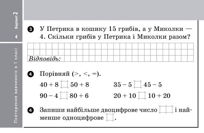 Представлений увазі вчителів та батьків посібник не йде в розріз до Типової освітньої програми, навпаки - складений виключно на її основі. Він розроблявся також відповідно до підручника Математика 2 клас Лишенко. Яскравий відривний матеріал допоможе в організації самостійних робіт на уроках з цього важливого предмету з метою перевірки знань. Завдання розраховані на час до 10 хвилин, за цей короткий період вчителю стає зрозуміло чи засвоїли школярі пройдений матеріал. Є стандартні завдання в посібнику, є і з підвищеною складністю, про це вказує позначка (*). Звичайно, що в 2 класі діти мають отримувати знання, перевіряти їх в нескладній формі, тому автор в посібник додає колобка, головного героя казки, пропонуючи домалювати його. Це допоможе малюкам, майбутнім вчителям, інженерам, водіям чи «айтішникам», вивчати предмет з цікавістю, та не боятися перевірки знань.