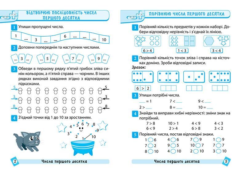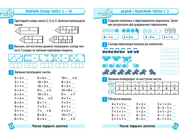 Тренажер містить завдання з основних тем математики для учнів 1 класу. Підібрані завдання дозволять учням не тільки розвинути обчислювальні навички, а й навчать знаходити раціональні шляхи вирішення вправ і задач
