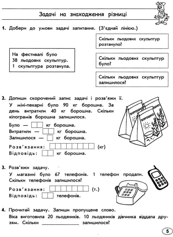 Завдяки цьому тренажеру дитина: відпрацює уміння розв’язувати прості сюжетні задачі в межах 100; відпрацює навички переходу від текстової моделі (текст задачі) до схематичної (короткий запис); закріпить навички виконання дій за алгоритмом; навчиться застосовувати обчислювальні навички у практичній ситуації.