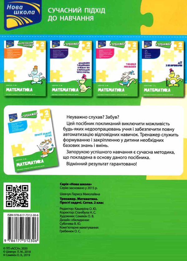 Серія «Нова школа» представляє лінійку тренажерів, які спрямовані на відпрацювання певних навичок, визначених і затверджених шкільною програмою. Один тренажер — одна навичка, доведена до автоматизму. Запорукою успішного навчання є сучасна методика, покладена в основу посібника і повна відповідність матеріалу оновленим («спрощеним») державним програмам.