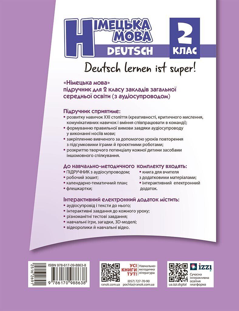 німецька мова 2 клас 2-й рік навчання підручник "Deutsch lernen ist super!" нуш