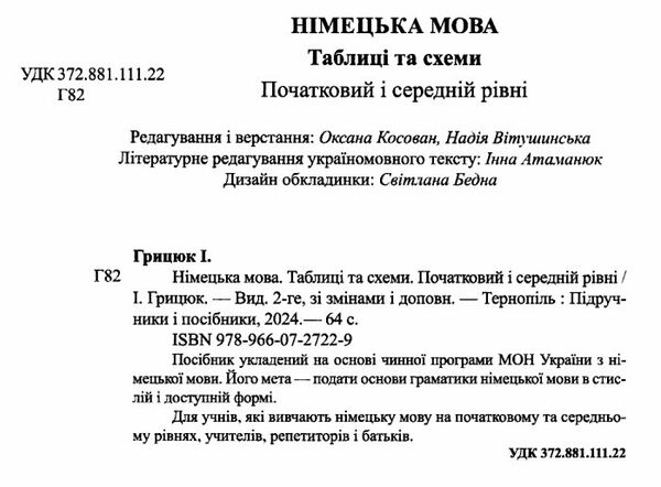 німецька мова таблиці та схеми початковий та середній рівень