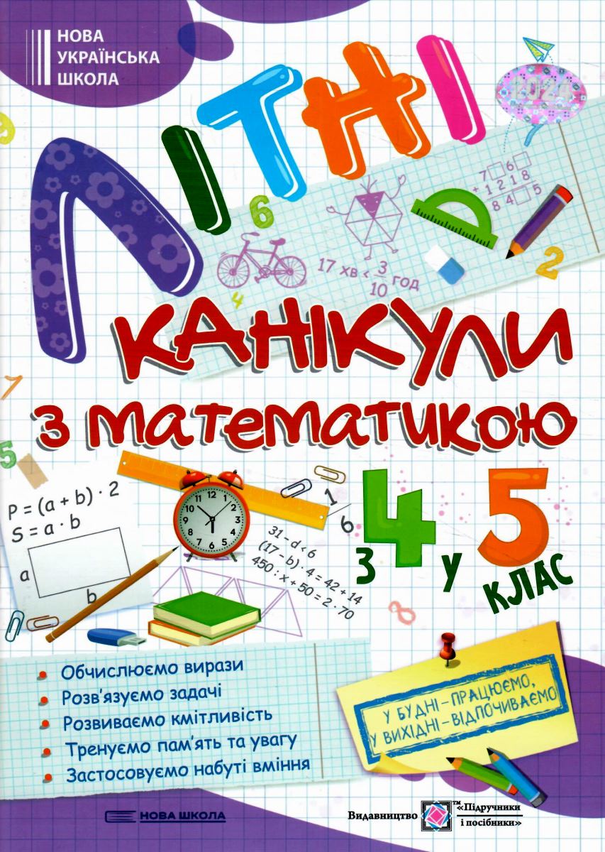 У зошиті запропоновано навчальні та розвивальні завдання, що охоплюють базовий матеріал з математики 4 класу і відповідають вимогам Державного стандарту початкової освіти та типовим освітнім програмам НУШ. Дібрані вправи розвивають мислення, математичні здібності, додають навчальному матеріалу практичного спрямування, формують дослідницькі вміння дитини, розуміння явищ довкілля. Кілька хвилин щоденного виконання завдань за принципом «У будні — працюємо, у вихідні — відпочиваємо» допоможуть улітку повторити вивчений матеріал, удосконалити отримані навички та підготуватися до навчання в 5 класі. Також присутні відповіді до завдань.