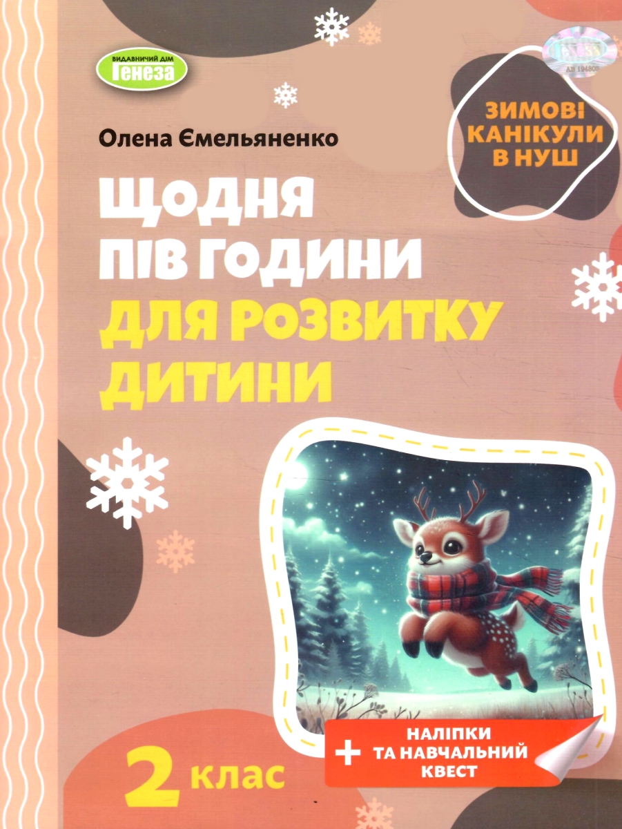 У посібнику Щодня пів години для розвитку дитини 2 клас Зимові канікули в НУШ запропоновано інтегровані завдання навчального та розвивального характеру у формі квесту, які допоможуть школярам весело, цікаво та змістовно провести зимові канікули, поєднати відпочинок з інтелектуальним розвитком, повторити вивчений матеріал та підготуватися до наступного навчального семестру.