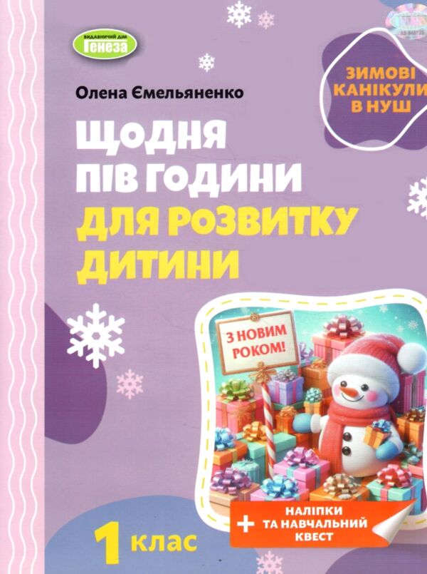 У посібнику Щодня пів години для розвитку дитини 1 клас Зимові канікули в НУШ запропоновано інтегровані завдання навчального та розвивального характеру у формі квесту, які допоможуть школярам весело, цікаво та змістовно провести зимові канікули, поєднати відпочинок з інтелектуальним розвитком, повторити вивчений матеріал та підготуватися до наступного навчального семестру.