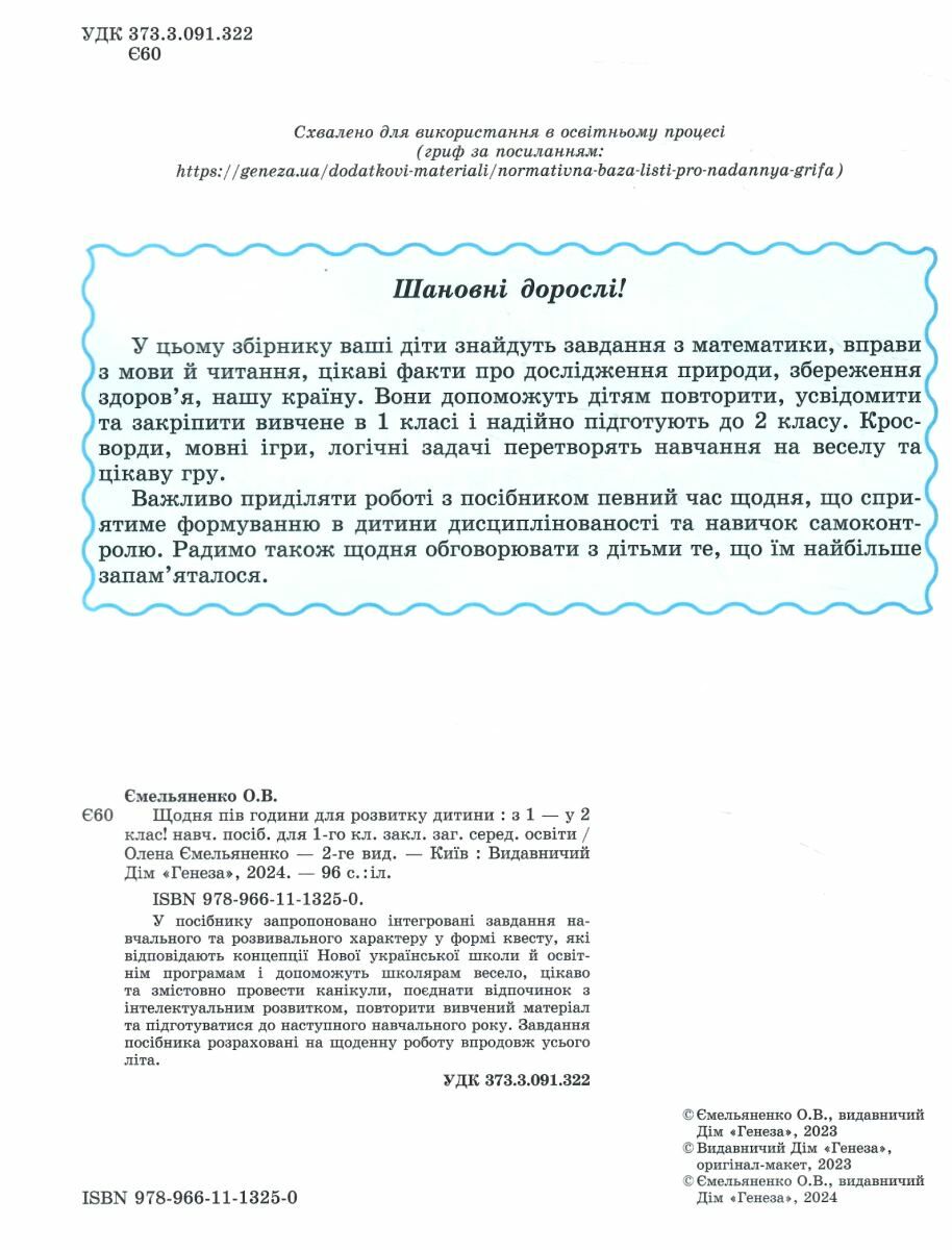 щодня півгодини для розвитку дитини з 1 в 2 клас навчальний посібник