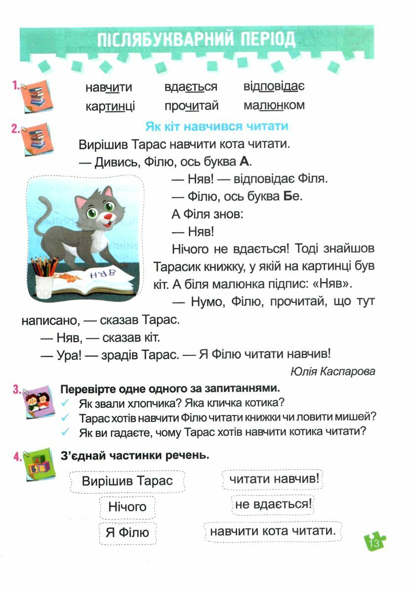 Посібник містить диференційовані, мовно-логічні вправи, різноманітні мовні дослідження, завдання на розвиток мовлення та критичного мислення, а також завдання для самооцінювання дітьми своєї роботи.