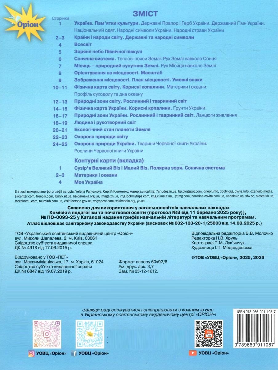 Схвалено для використання у загальноосвітні навчальних закладах Комісією з педагогіки та методики початкового навчання Науково-методичної ради з питань освіти Міністерства освіти і науки України (лист № 22.1/12-Г-382 від 18.06.2020 р.) Атлас укладено відповідно до навчальної програми «Я досліджую світ» Нової української школи.