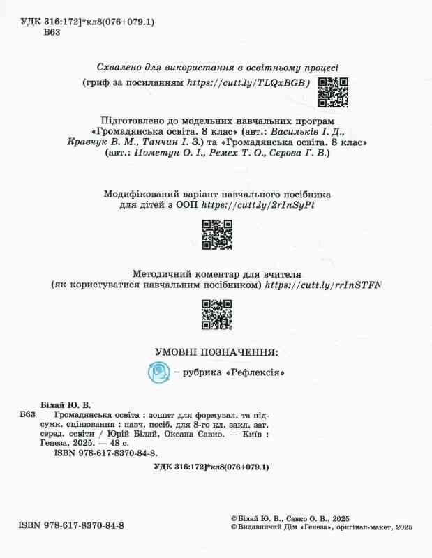Громадянська освіта 8 клас Зошит для формувального та підсумкового оцінювання