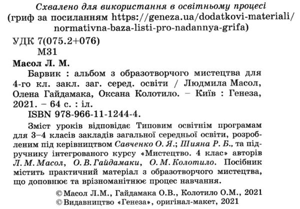образотворче мистецтво 4 клас альбом барвик