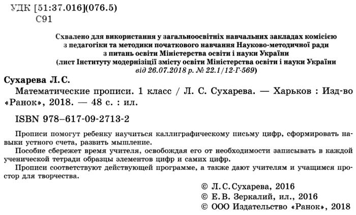 сухврева математически прописи 1 класс