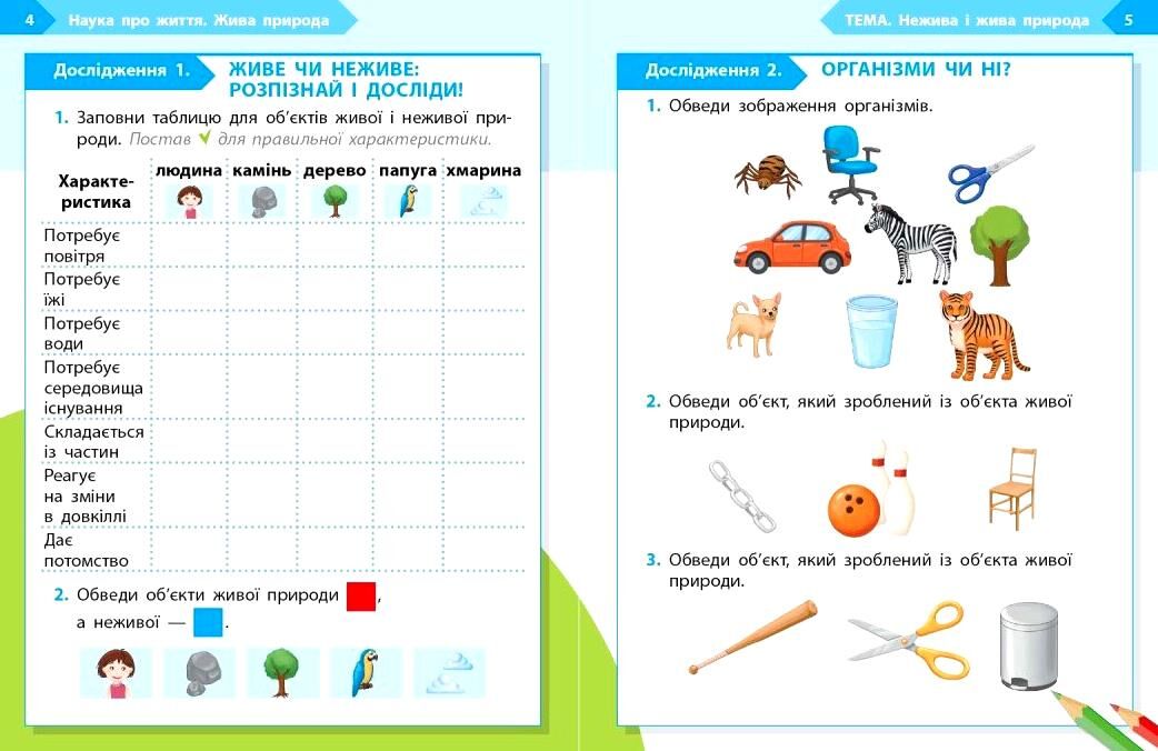 Зошит є складовою навчально-методичного комплекту «STEM-старт». Матеріал посібника спрямований на формування початкових уявлень про живу й неживу природу, потреби істот і взаємозв’язки в довкіллі. Через спостереження, малювання, прості завдання та експерименти учні й учениці дізнаються, що потрібно рослинам і тваринам для життя, як помічати зміни в природі та чому важливо берегти навколишній світ.