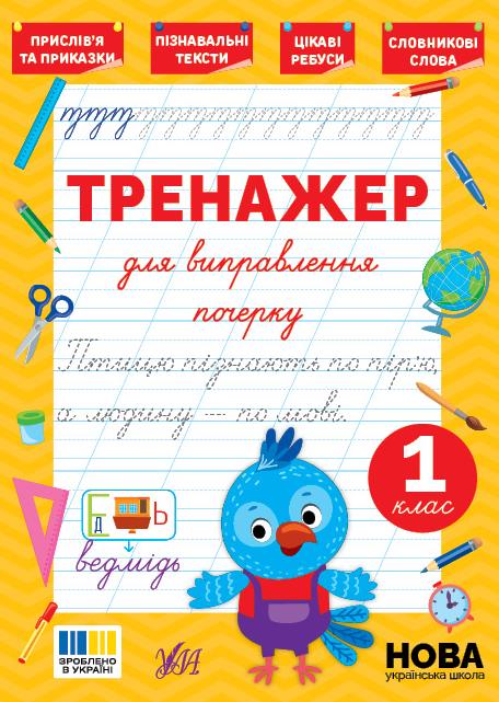 "Тренажер для виправлення почерку «1 клас» допоможе першокласникам відпрацювати правильне написання літер і їхні з’єднання. Дитині пропонується навести по пунктиру цікаві тексти, розгадати тематичні ребуси й записати відгадки; навести й прочитати прислів’я та приказки, що за змістом пов’язані з текстами, а також словникові слова та слова, написання яких варто запам’ятати. Зошит допоможе покращити почерк, удосконалити навички дрібної моторики, підвищити грамотність і розширити словниковий запас. Видання призначене для учнів 1 класу, їхніх батьків і вчителів."