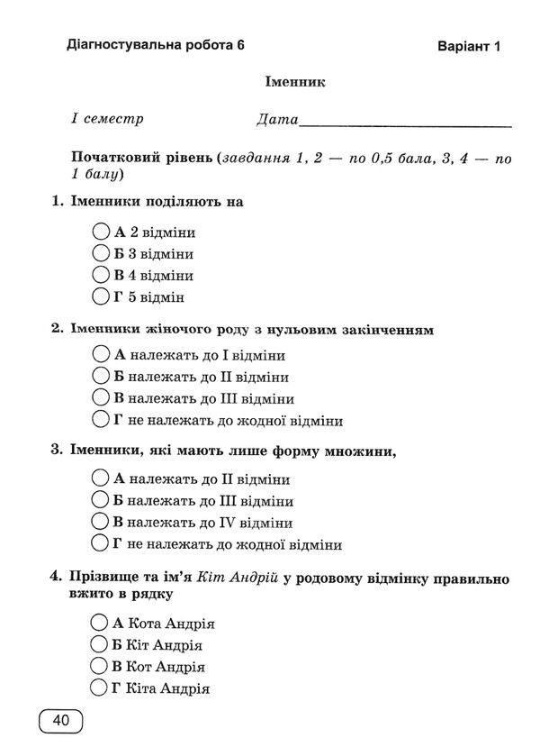 українська мова 6 клас діагностувальні роботи за програмою заболотного