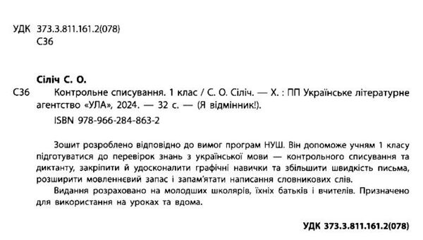 я відмінник! контрольне списування 1 клас книга