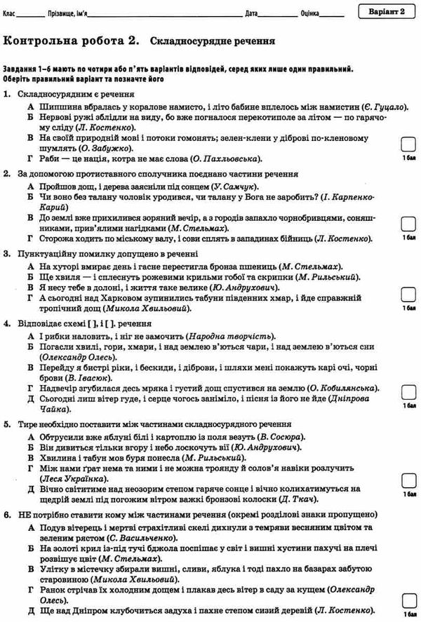 українська мова та література 9 клас зошит для поточного та тематичного оцінювання